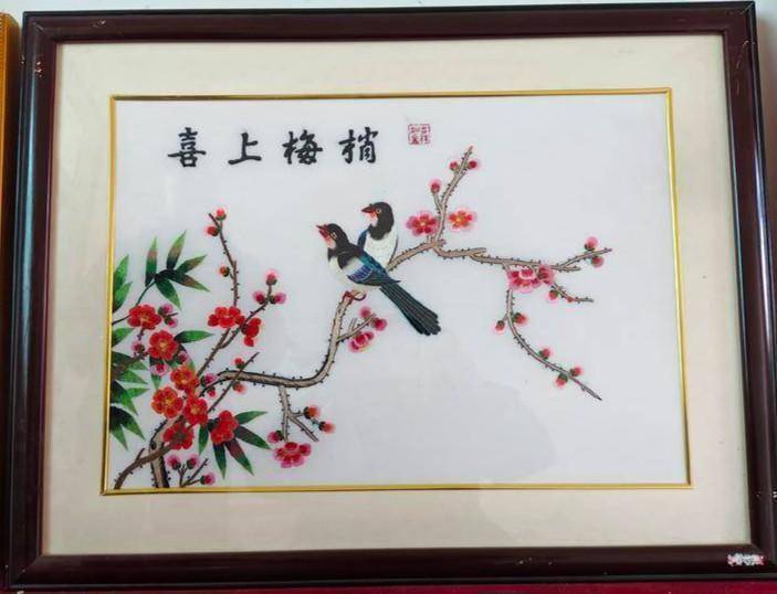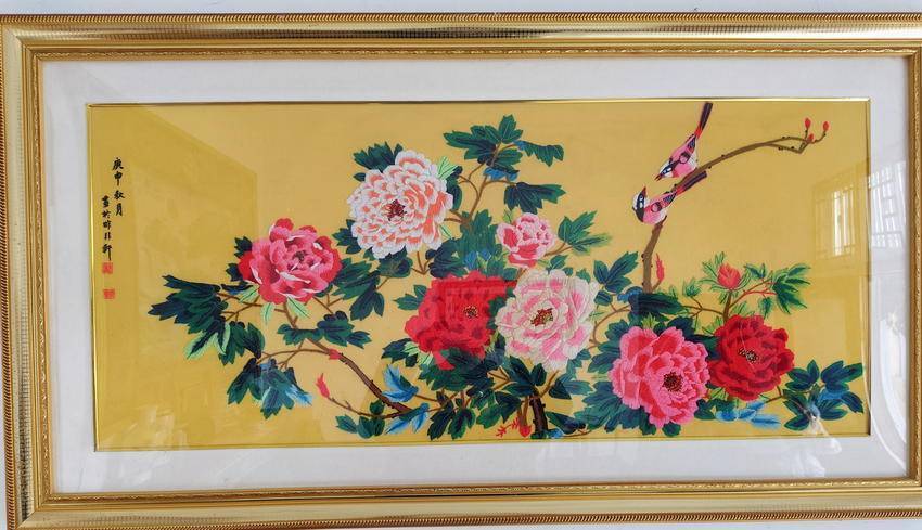 2011年,在打理3亩田地之余,他萌发了创作大画幅作品的想法。第一幅《富贵白头》耗时数月,他先用工笔画下原创图案,再运用汉绣技法细细绣制。此后,《喜上梅梢》《孔雀牡丹》《莲莲有鱼》等大幅作品相继问世,色彩明艳、寓意吉祥,渐渐在乡间传开。