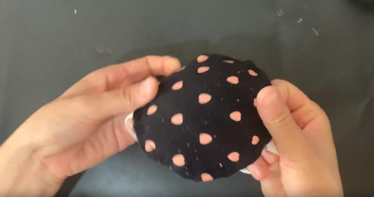 接着把两个半圆形罩杯完整剪下来,因为内部有柔软的气垫,而且弧度还能贴合宝宝的膝盖,就可以起到缓冲效果。再把文胸的松紧带剪下来,缝合在气垫的两端,一个柔软的护膝就做好了,给小宝宝戴在膝盖处,就不担心碰到膝盖了。