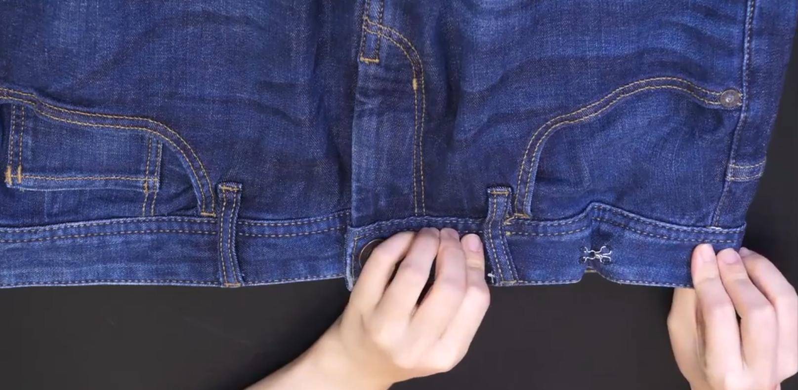 可以把剪下来的文胸挂钩缝在裤腰上,如果裤子特别肥,可以在两边裤腰处各缝两个。如果裤子不太肥,可以在一边的裤腰处缝两个。缝好之后就可以把挂钩扣好,裤腰就变得合身能穿了。